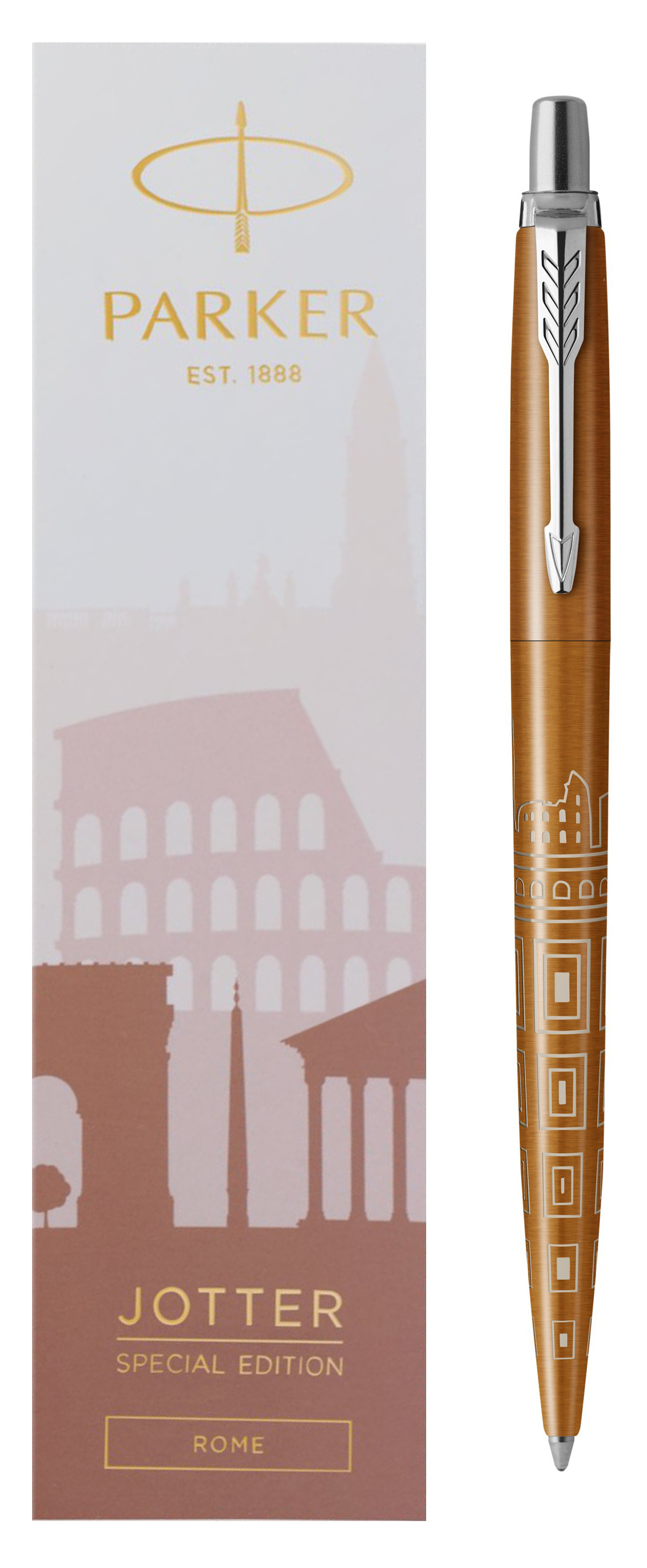 Ручка шариковая Parker Jotter Rome Bronze CT от официального дилера Parker в Пензе. Вы можете дополнительно заказать гравировку, которая подчеркнет Вашу оригинальность и придаст памятность статусному подарку. Все ручки Паркер поставляются в фирменном футляре.